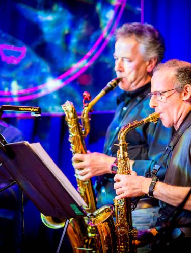 Intermediates are players who have at least two years of playing experience, who play with confidence, understand music notation (essential for horn players) and have basic skills regarding an approach to improvisation. The aim is to build improvisation skills and practice reading notated charts in a large group setting.