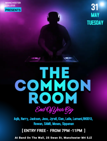 Level 3 year 1 DJs from The Manchester College will be performing multiple genre DJ sets, from hip-hop to grime to house to garage to jungle/drum and bass. They have been practicing for this performance since September 2021 and all feel ready to showcase their talents to an audience!